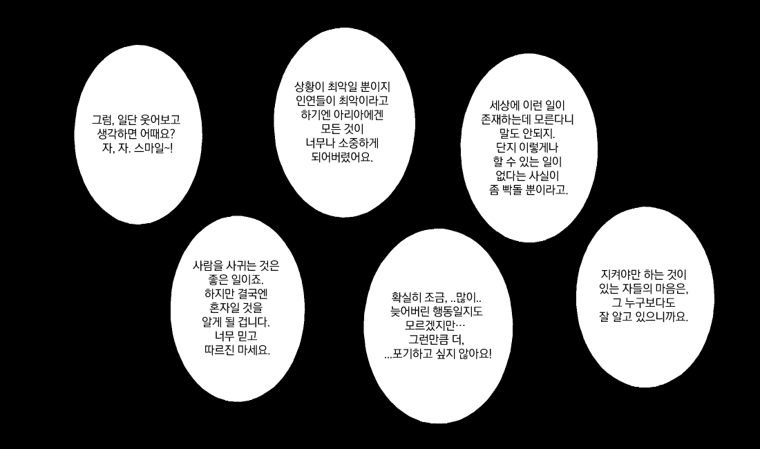 우리를 발견하고서도 담담한 낯으로 잠시 침묵을 지키던 해윤은 이내 비죽이며 입을 엽니다.