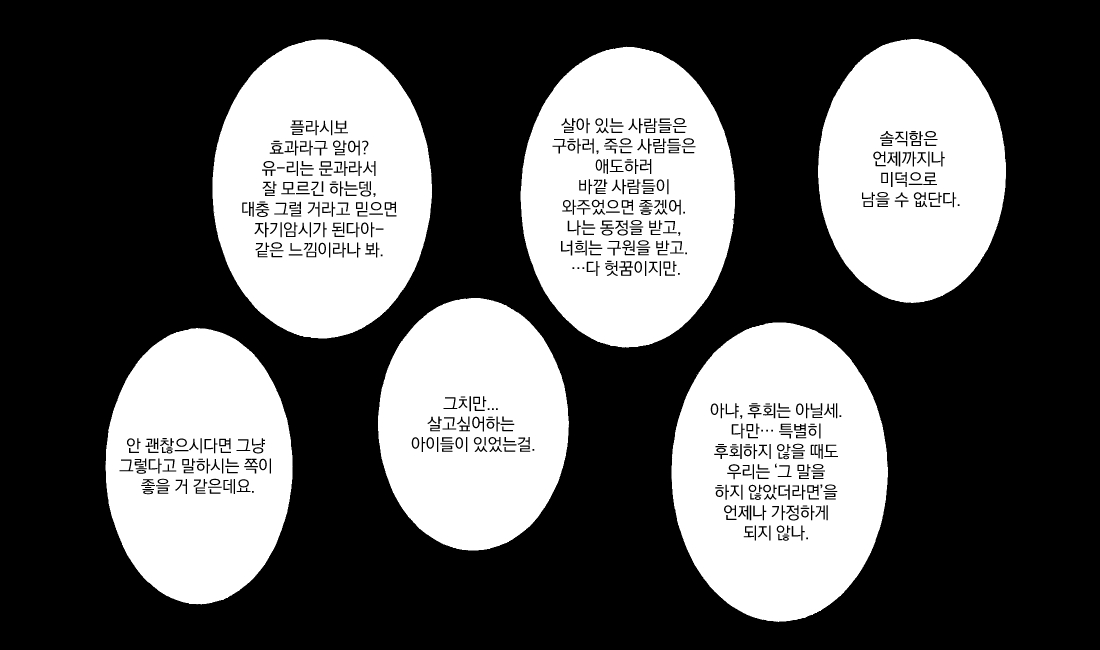 사회는, 그리고 생명은 아직 미숙하기에 여전히 자리 찾지 못한 정의는 많고,